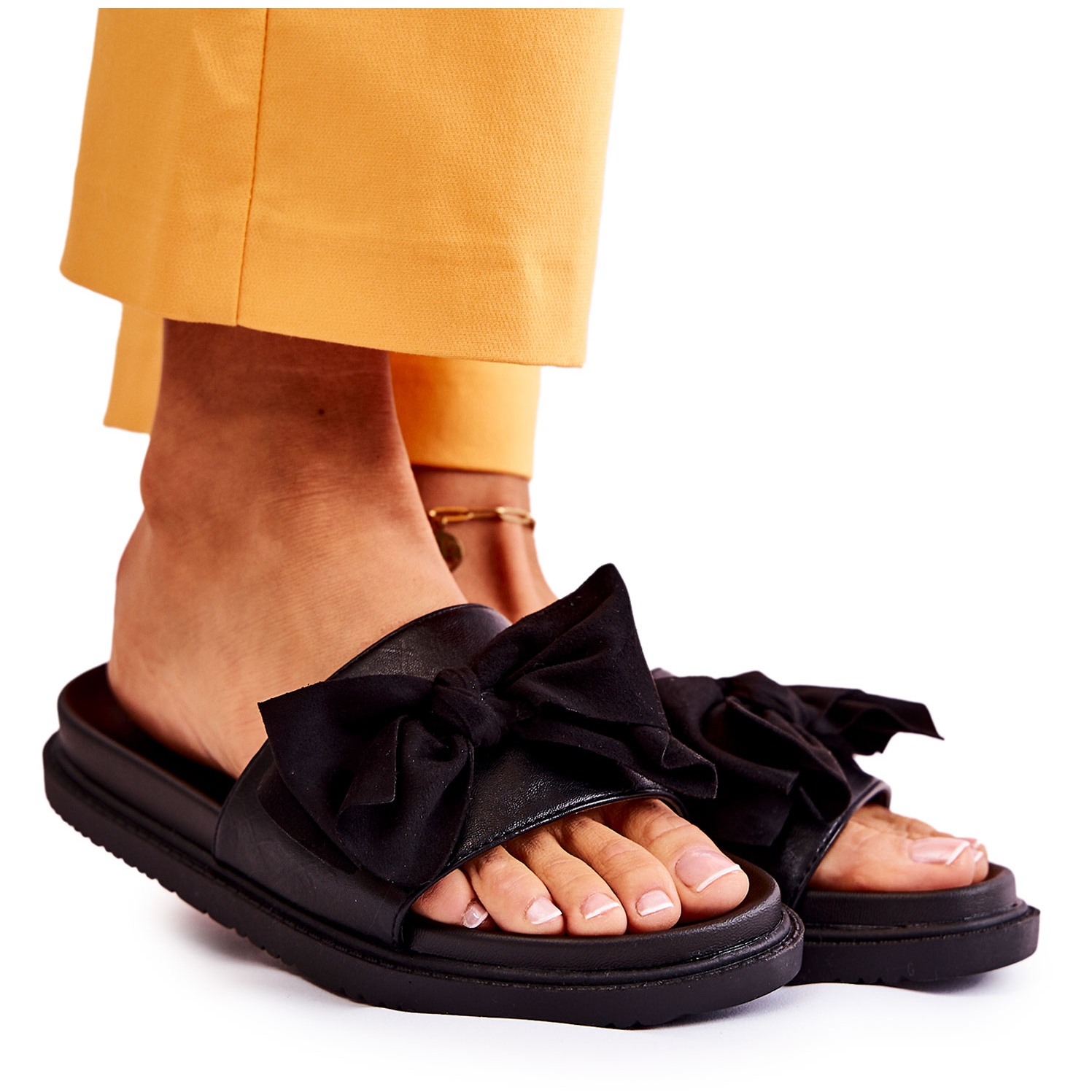 PJ1 PJ1 Klassiset naisten nahkatossut, joissa on rusetti musta Dessy