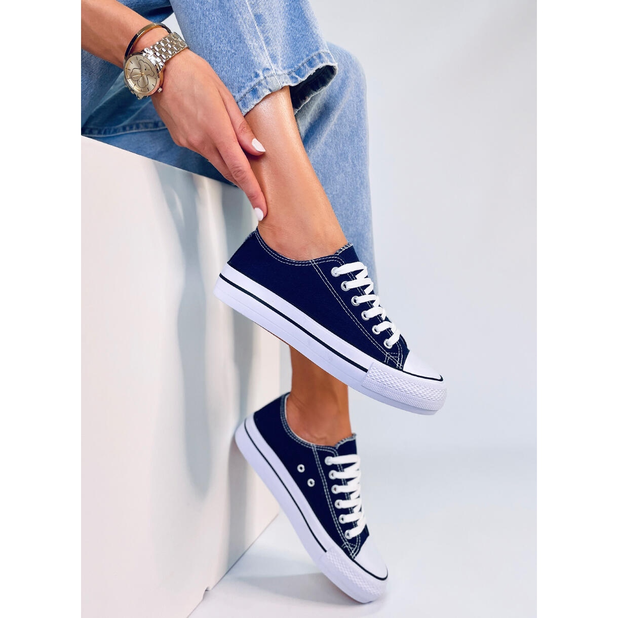 Näiden ainutlaatuisten tennarien hallitseva väri on sininen, laivastonsininen, mikä lisää eleganssia ja tekee niistä helppoja yhdistää erilaisiin asuihin. Riippumatta siitä, pidätkö mieluummin farkuista, mekoista vai kangashousuista, Fargis D.BLUE -lenkkarit täydentävät loistavasti mitä tahansa ilmettä.