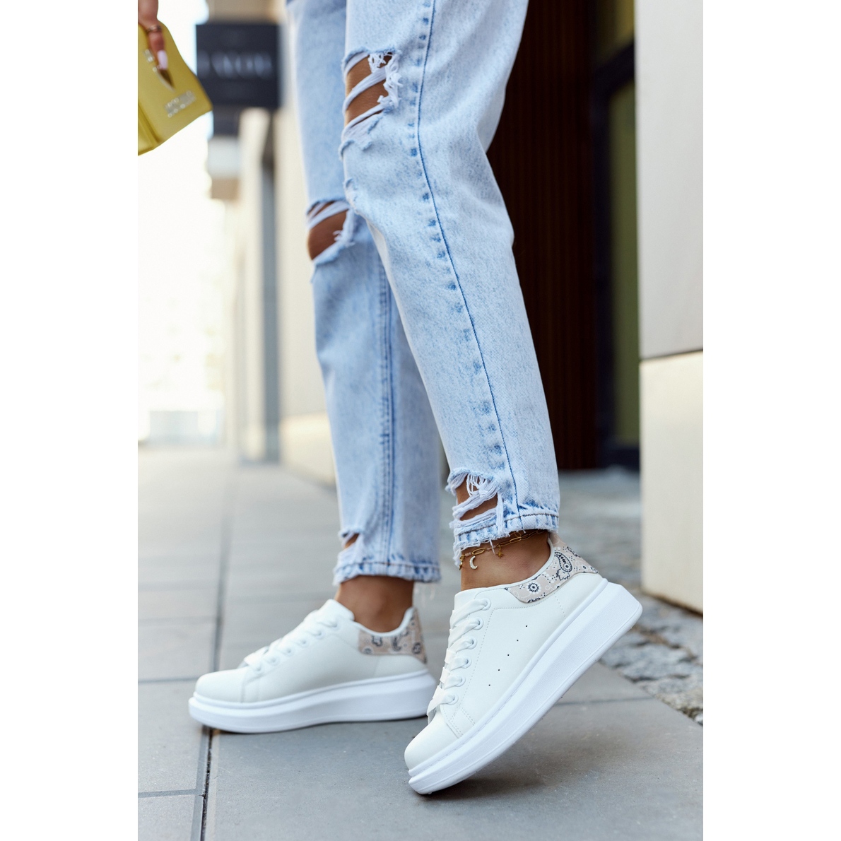 Löydä ainutlaatuista tyyliä ja mukavuutta klassisilla naisten FE1-urheilujalkineilla valkoisen ja beigen sävyssä. Nämä tyylikkäät laadukkaasta ekonahasta valmistetut alustakengät ovat täydellinen valinta urheilun ja vapaa-ajan tyylin ystäville.
