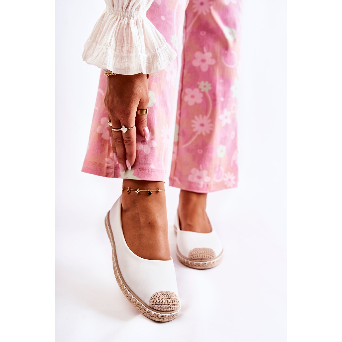 Inna marka Klassiset naisten valkoiset nahkaiset espadrillit Calabria beige valkoinen