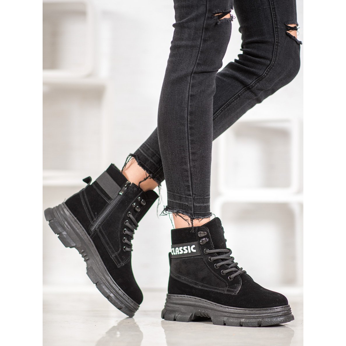 Löydä mukavuuden ja tyylin uusi ulottuvuus Bella Paris Classic Platform -nilkkurit tyylikkäässä mustassa värissä. Nämä muodikkaat, ekologisesta mokkanahkasta valmistetut naisten kengät yhdistävät viimeisimmät trendit ympäristöstä huolehtimiseen, mikä tekee niistä ihanteellisen valinnan jokaiselle naiselle, joka välittää tyylistään ja samalla luopuu luonnonnahkatuotteista.