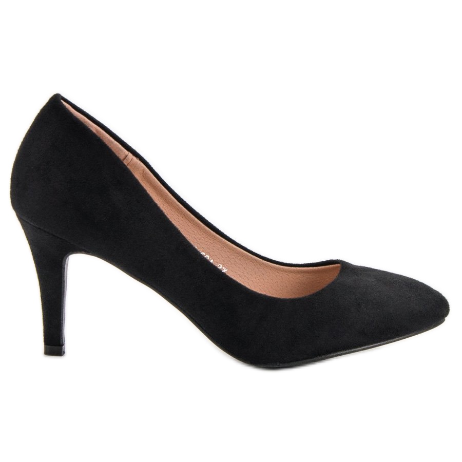 Pumput on valmistettu korkealaatuisesta mokkanahkasta, mikä antaa niille hienovaraisen ja ylellisen ilmeen. Klassinen musta väri on täydellinen pohja mihin tahansa tyyliin, ja niiden tyylikäs leikkaus herättää varmasti huomion. Pyöreä kärki ja sisäänrakennettu, jäykistetty kantapää takaavat käyttömukavuuden ja korostavat samalla naisellista vartaloa.