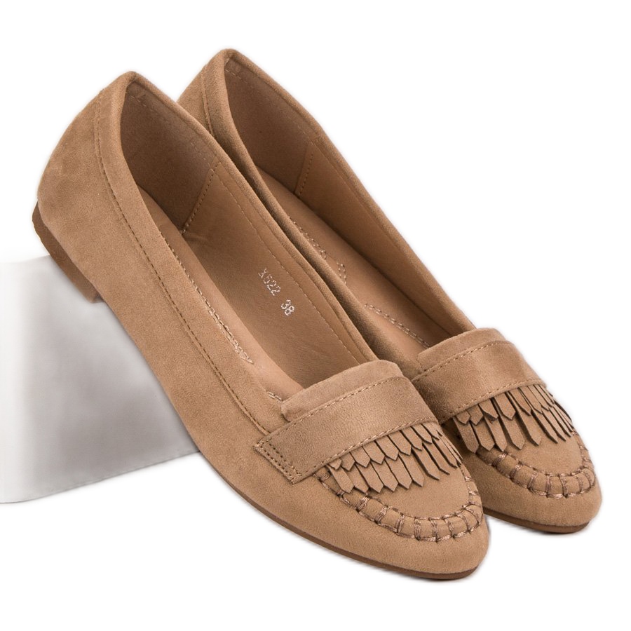 Mokassiineissa on ruskea, ohut pohja, joka ei ole vain mukava, vaan sopii myös esteettisesti rentoon tyyliin ja sopii täydellisesti jokaiseen päivään. Slip-on-kiinnityksen ansiosta kenkien pukeminen ja riisuminen on erittäin helppoa. Materiaaleina on käytetty sekä ekologista nahkaa ulkopuolelta että mukavaa sisäpohjallista, joka antaa pehmeyden ja mukavuuden tunteen.