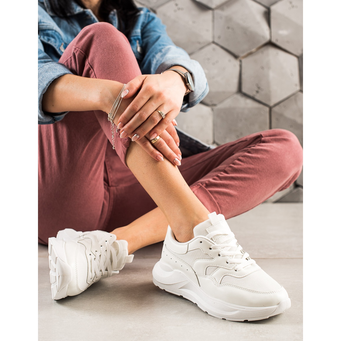 Valkoiset TRENDI-lenkkarit toimivat hyvin monissa tilanteissa - ne sopivat täydellisesti sekä urheilutyyleihin että arkisarjoihin ja sopivat täydellisesti tapaamisiin ystävien kanssa. Universaalisuutensa ansiosta ne ovat välttämättömiä jokaisen naisen vaatekaapissa.