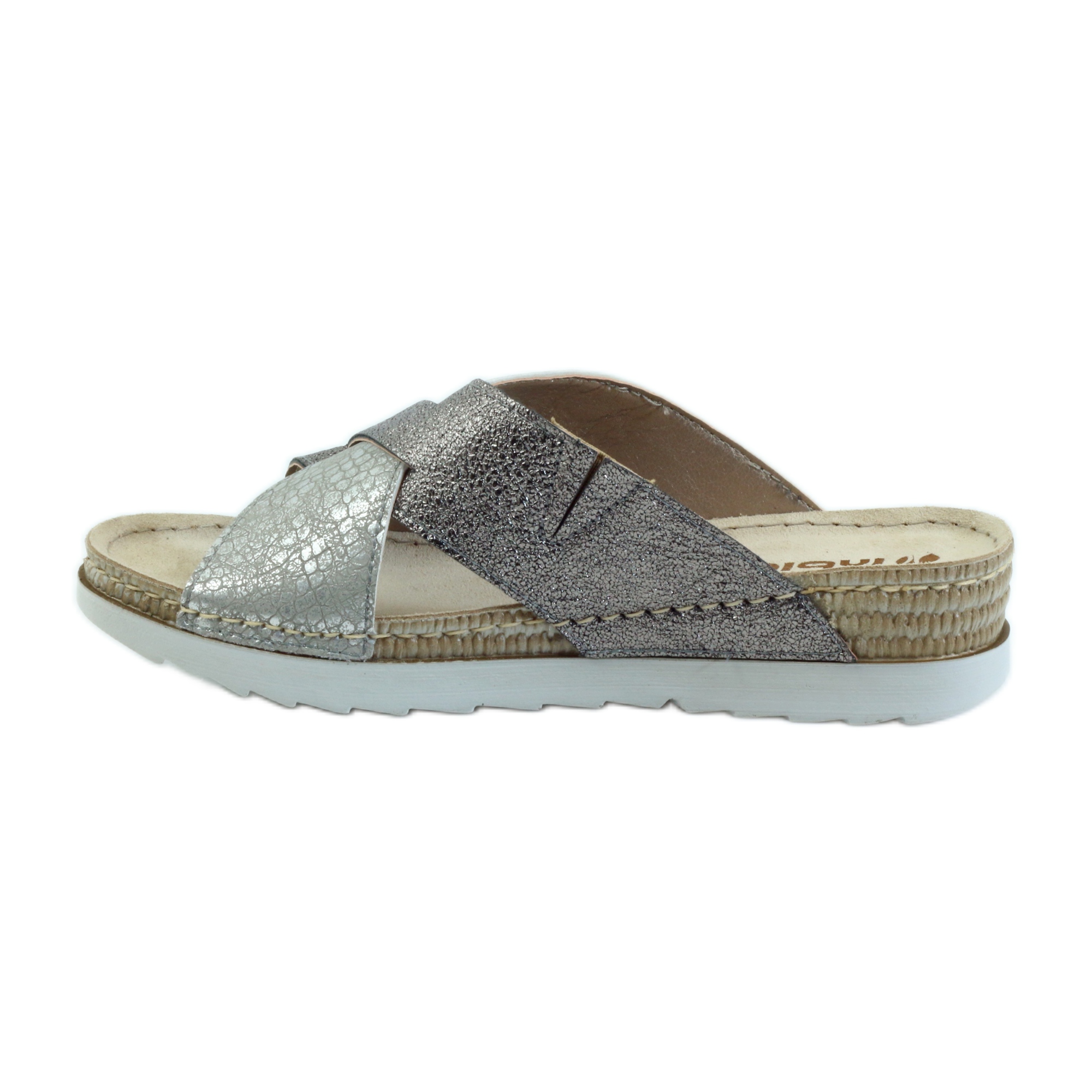 Naisten KOMFORT INBLU 010 varvastossut hopean ja harmaan sävyinä ovat täydellinen valinta jokaiselle naiselle, joka arvostaa mukavuutta ja tyyliä jokapäiväisessä käytössä. Nämä klassiset varvastossut on valmistettu korkealaatuisesta ekologisesta nahasta, ja niissä yhdistyvät jalkineiden terveysominaisuudet ja moderni muotoilu.