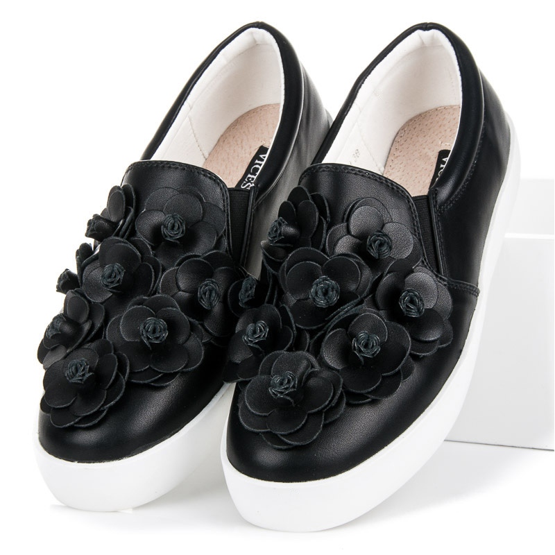 Löydä ainutlaatuista eleganssia ja mukavuutta mustilla Vices-slip-oneilla, joista tulee varmasti välttämätön osa vaatekaappiasi. Nämä katseenvangitsijat kengät sopivat täydellisesti useisiin tyyleihin, niin arkeen kuin tyylikkäämpiinkin. Niiden herkät koristeet alkuperäisten, pienten kukkien muodossa antavat niille hienovaraisen viehätyksen ja erottavat ne muista malleista.