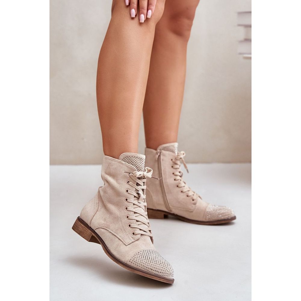 Koristetut tasakorkoiset saappaat, Eco Suede, lämmin, vaalea beige Ellieo