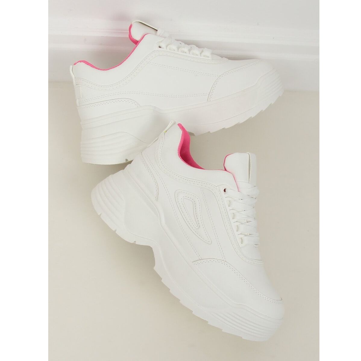 Yksityiskohdat: Korkea pohja, valkoiset LA78P Fushia -urheilukengät valkoinen vaaleanpunainen