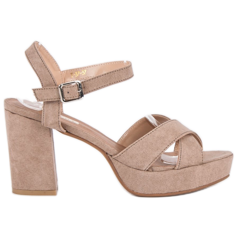 Yksityiskohdat: Flyfor Korkeakorkoiset mokkanahkasandaalit ruskea