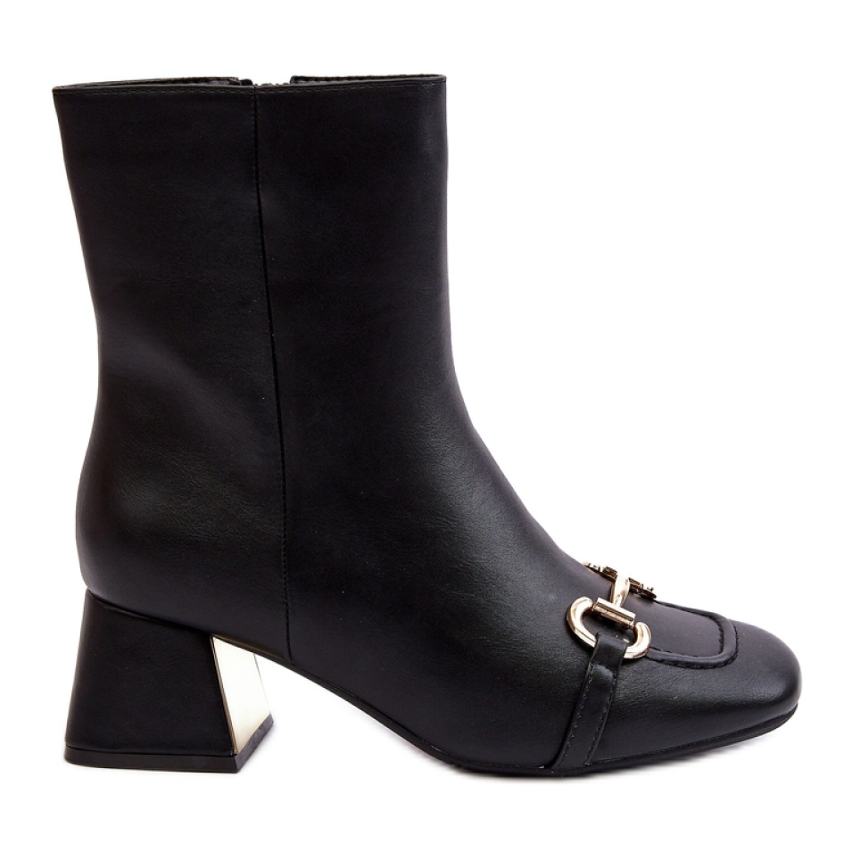 Mustat saappaat eivät ole vain muodikasta lisäystä, vaan myös käytännöllisiä jalkineita. Kiinnitetty liukusäätimellä sivulta, helpottaa laittaa ja nousta. Ne erottuvat neliömäisestä varpaasta, mikä antaa heille nykyaikaisuuden. Jäykistetty kantapää varmistaa puun vakauden ja mukavuuden. Lisäksi tyylikäs koriste kultaisessa muovivärissä tuo hienovaraisen aksentin, joka kiinnittää kaikkien huomion.