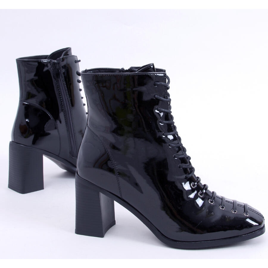 Löydä poikkeuksellinen tyyli ja mukavuus BM Aubrey Blackin korkeakorkoisten nilkkurien avulla! Nämä elegantit, mustat kiiltetystä ekonahasta valmistetut naisten saappaat kiinnittävät huomiota alkuperäisillä nauhoituksillaan ja ilmeikkäällä muotoilullaan, jotka varmasti lisäävät luonnetta mihin tahansa tyyliin. Koron korkeus 8,5 cm kiinteällä tolppalla varmistaa vakauden ja käyttömukavuuden, täydellinen jokapäiväiseen käyttöön.
