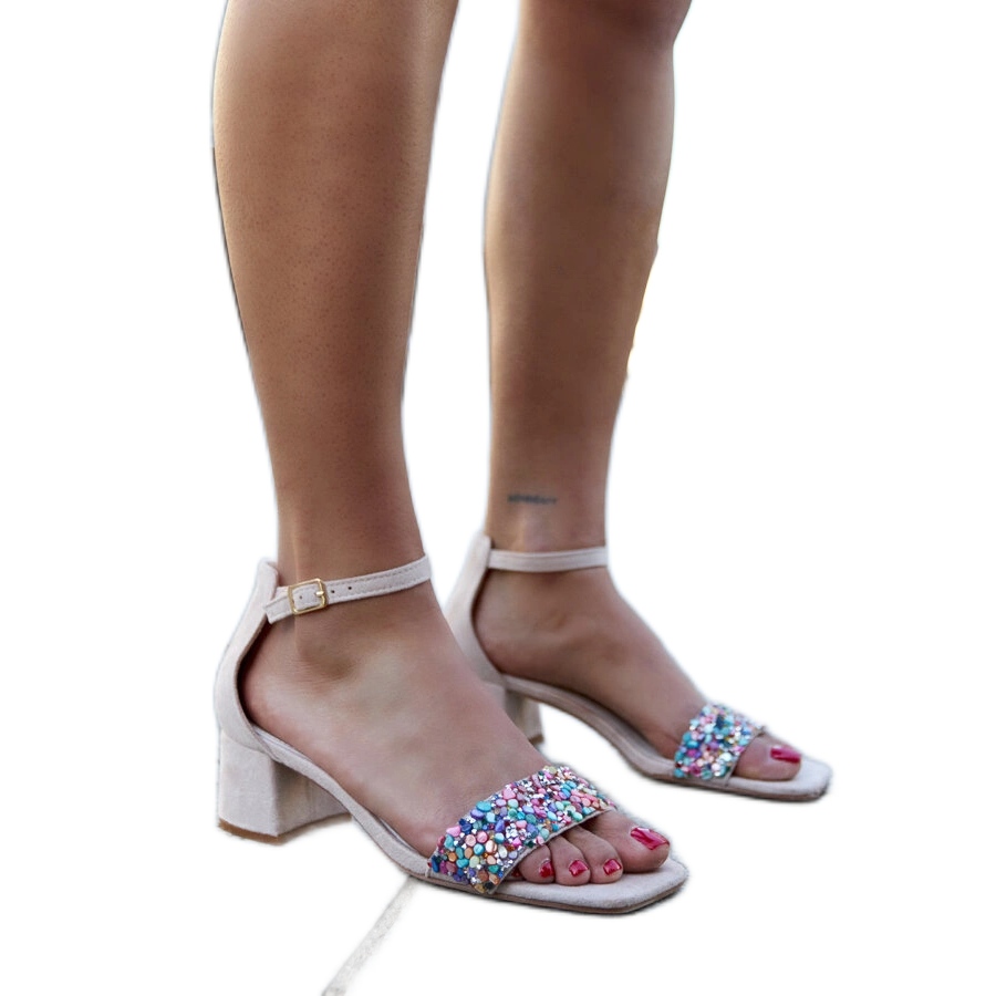 Inna marka Korkeakorkoiset sandaalit värikkäillä Ghuson-kivillä beige