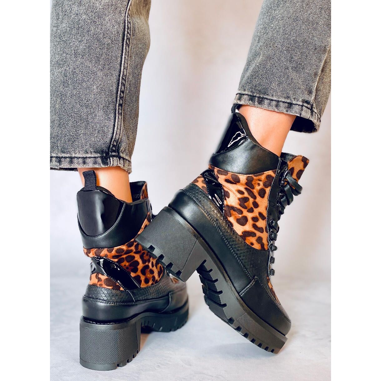 Löydä ainutlaatuinen tyyli ja mukavuus naisten saappaiden ansiosta, joissa on korkea pohja NS067 muodikkaassa leopardikuvioisessa. Nämä mustat, nauhalliset nilkkurit ovat täydellinen valinta naisille, jotka haluavat erottua joukosta ja seurata uusimpia muotitrendejä.