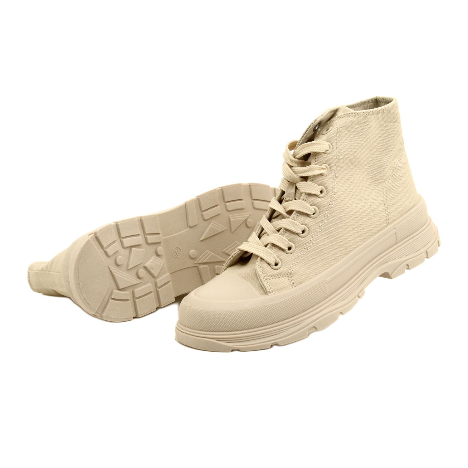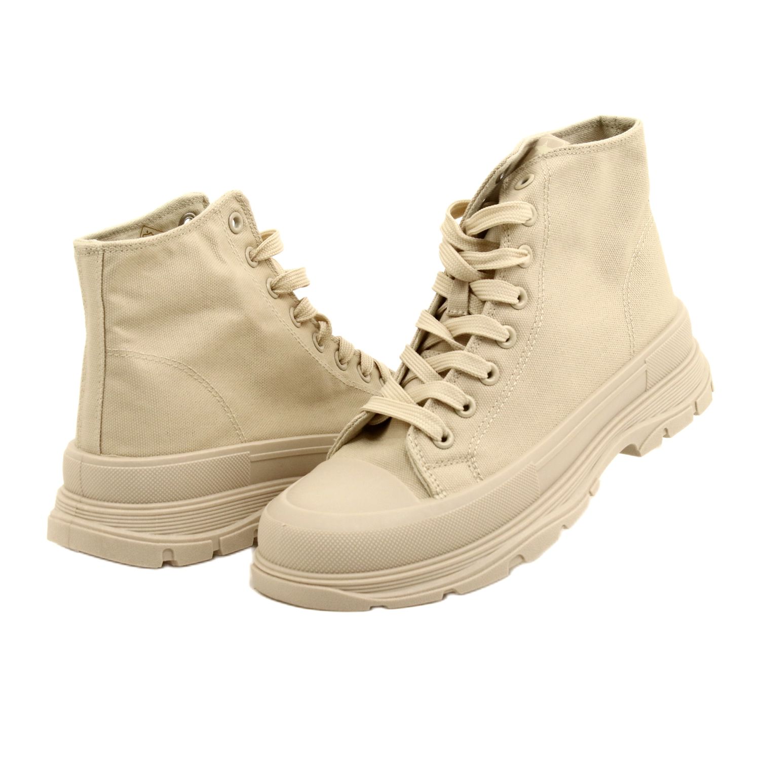 Klassinen ja samalla moderni - korkea uutinen lämpimässä beige -sävyssä on kätevä ja tyylikäs ehdotus joka päivä. Nilkan korkea yläosassa oleva ja vakaa alusta, jonka korkeus on 4 cm, lisää kuvioon hieman laihtumista säilyttäen pukeutumisen mukavuuden. Ylä- ja sisustus, joka on valmistettu ilmavasta kankaasta, ja kumipohja tarjoaa hyvän otteen. Ystävällinen jokapäiväisiin tyylit - rento mekkoista farkuihin.