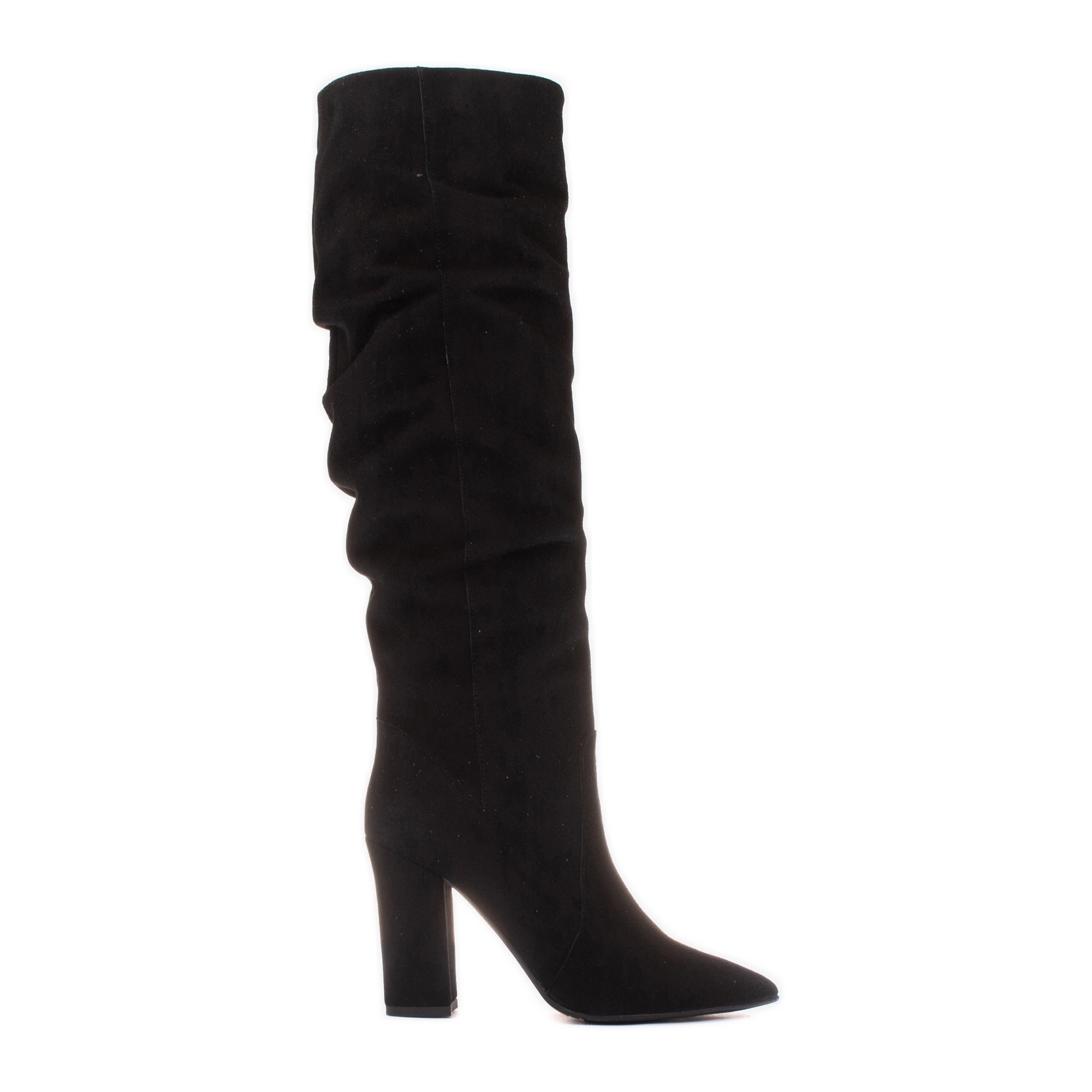 Yksityiskohdat: Marco Shoes Korkeat, rypytetyt mustat saappaat, jotka on valmistettu luonnollisesta mokkanahasta