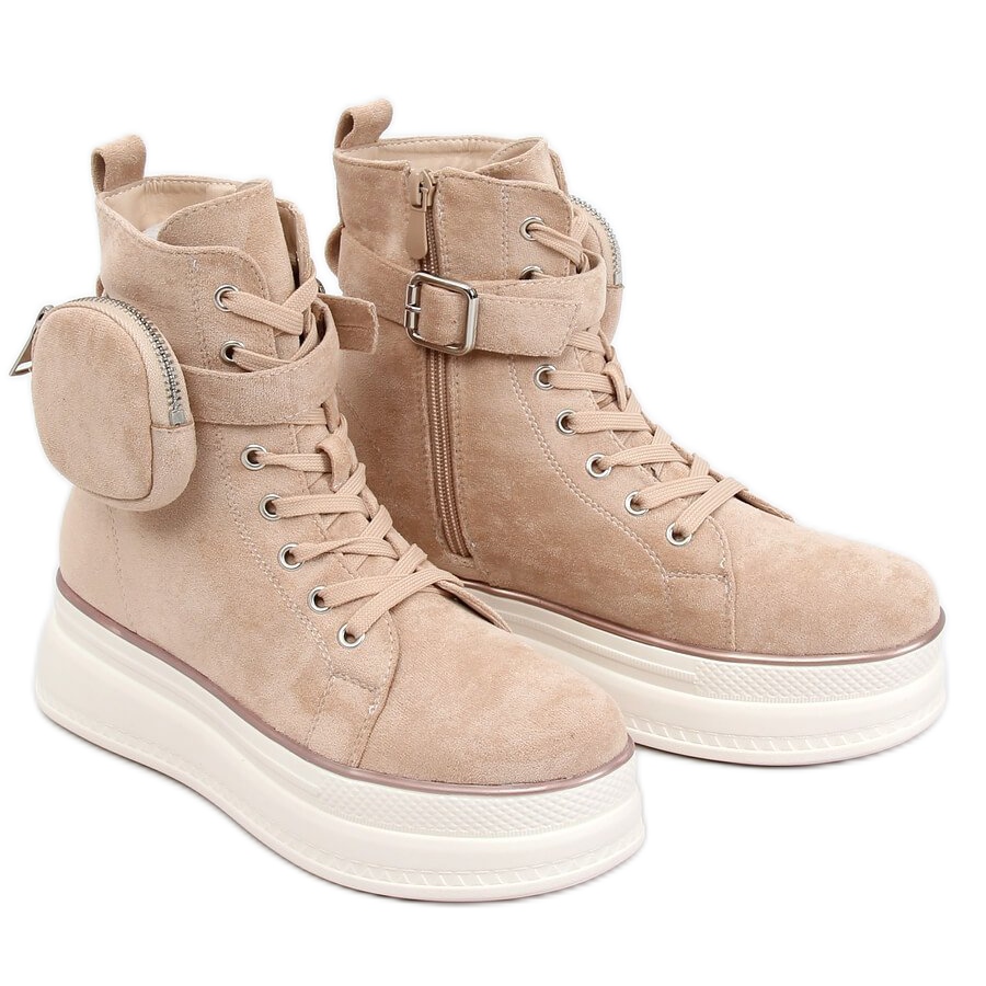 Esittelemme beigenväriset HO263 Beiget korkeat lenkkarit, joissa yhdistyvät muodikas muotoilu ja käytännöllisyys. Nämä naisten mokkanahkaiset tennarit erottuvat korkeasta pohjasta, mikä antaa niille ainutlaatuisen luonteen. Lisäetuna on ainutlaatuinen laukku, joka on helppo irrottaa, mikä varmistaa paitsi tyylin myös toimivuuden.