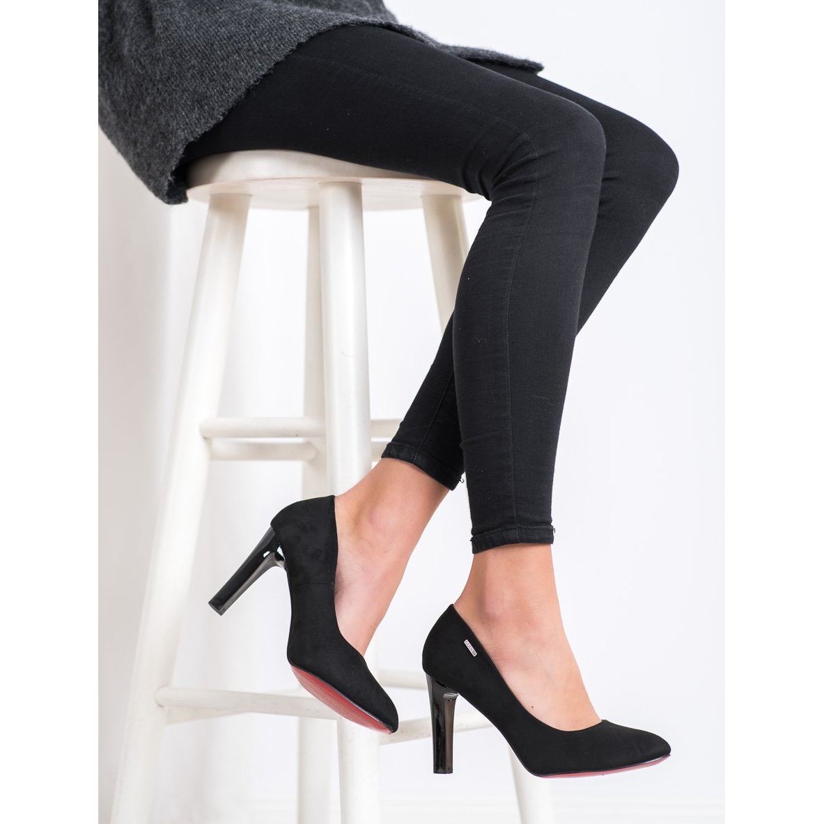 Synteettisestä materiaalista valmistettu pohja on sileä ja kulutusta kestävä, mikä tarkoittaa, että pumput palvelevat sinua pitkään. 9 cm:n kantapää pidentää jalkoja optisesti ja lisää itseluottamusta, ja slip-on-muotoilu helpottaa kenkien pukemista ja riisumista.