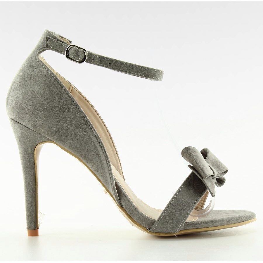 Korkokengät sandaalit rusetilla 6101 harmaa - eleganssia mokkanahkaversiossa