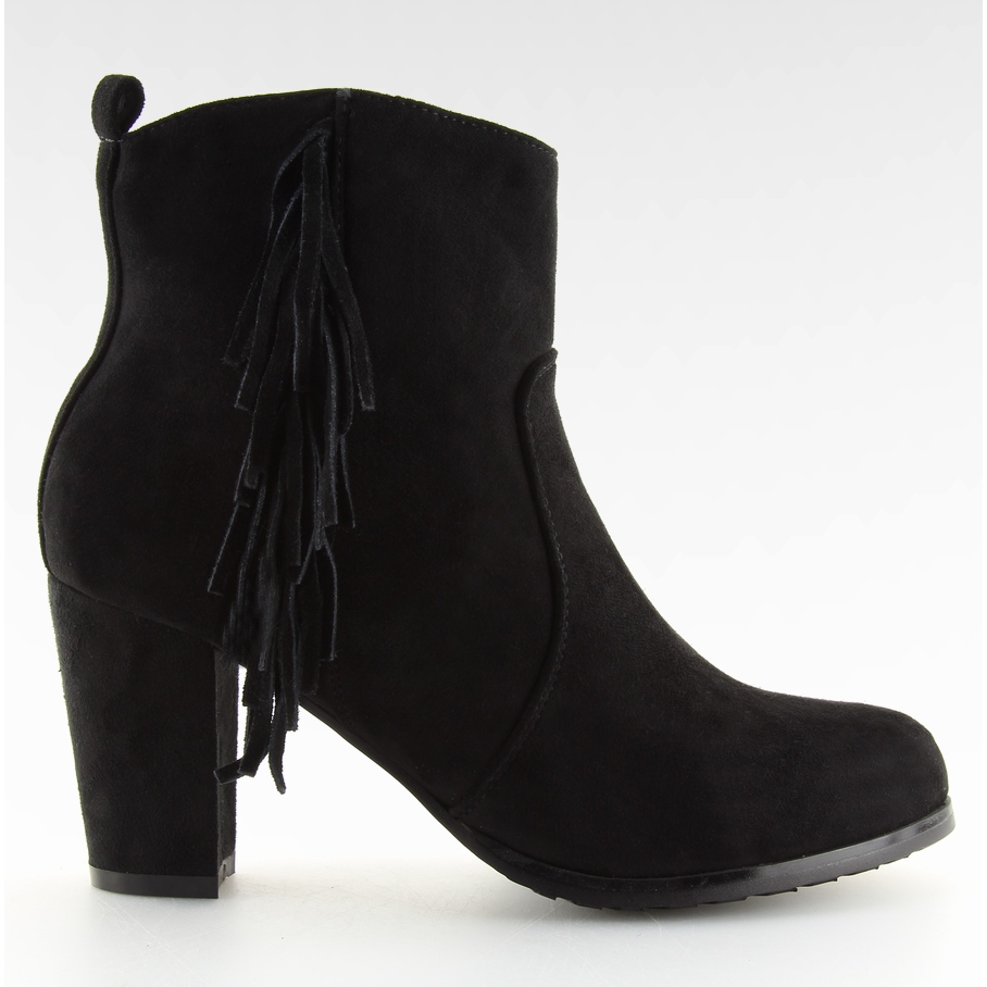 JKD-14 Mustat korkeakorkoiset nilkkurit hapsuilla - musta mokkanahka boho nilkkurit