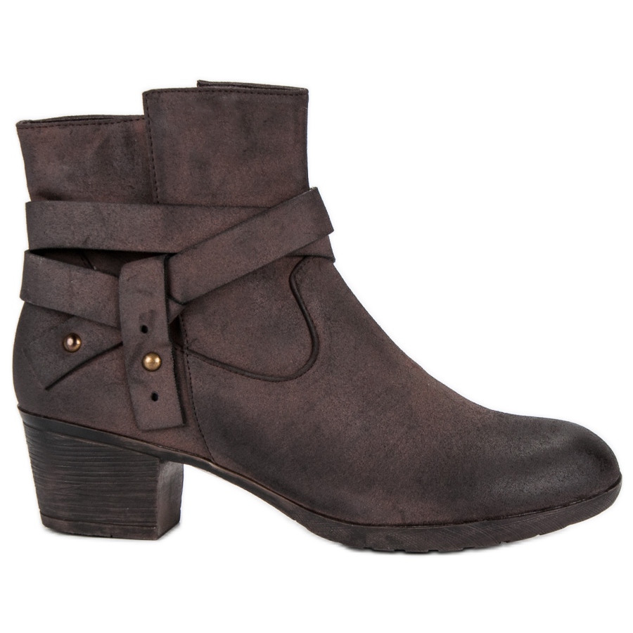 Löydä muodikkaat ruskeat korkeakorkoiset nilkkurit, jotka ovat täydellinen valinta kaikkiin tilaisuuksiin. Näissä tyylikkäissä naisten kengissä yhdistyvät klassinen tyyli ja moderni muotoilu, mikä tekee niistä täydelliset arjen tyylien luomiseen. Mielenkiintoinen kuvio ja moitteeton muoto saavat saappaat herättämään huomiota ja niiden ruskea väri sopii täydellisesti syksyn trendeihin.
