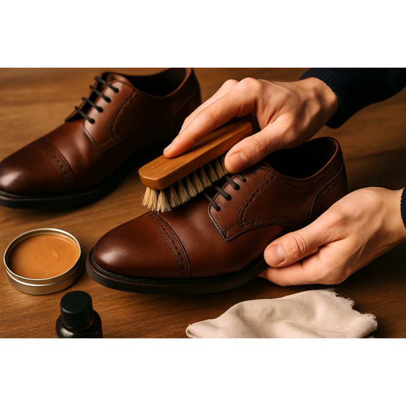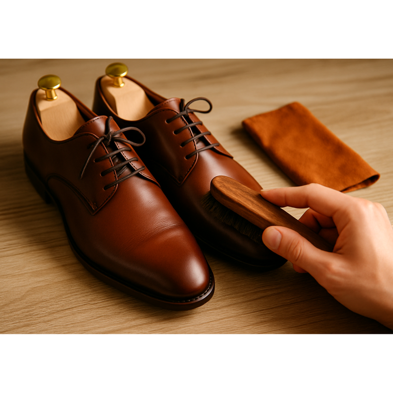 Jokaisen käytön jälkeen: Poista pöly ja lievä lika pehmeällä harjalla tai syntisellä. Laita puiset säännöt heti poistamisen jälkeen - ne imevät kosteutta ja pitävät muodon. Anna kengän rentoutua vähintään 24 tuntia ennen käyttämistä - iho tarvitsee aikaa kuivuakseen. Säilytä tuuletetussa paikassa, vältä liian lämpimiä ja liian kylmiä huoneita. Älä koskaan kuivaa jäähdyttimessä tai täydessä auringossa. Kierrä kenkäparia - älä käytä samaa joka päivä. Nämä yksinkertaiset toiminnot säännöllisesti estävät useimmat ongelmat.