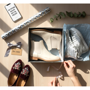 Personointi on vaikuttavaa. Lisää käsinkirjoitettu kirje toiveineen, selitä miksi valitsit nämä kengät, mainitse jokin erityinen tilaisuus. Persoonallinen kosketus tekee tavallisesta ostoksesta harkitun lahjan.