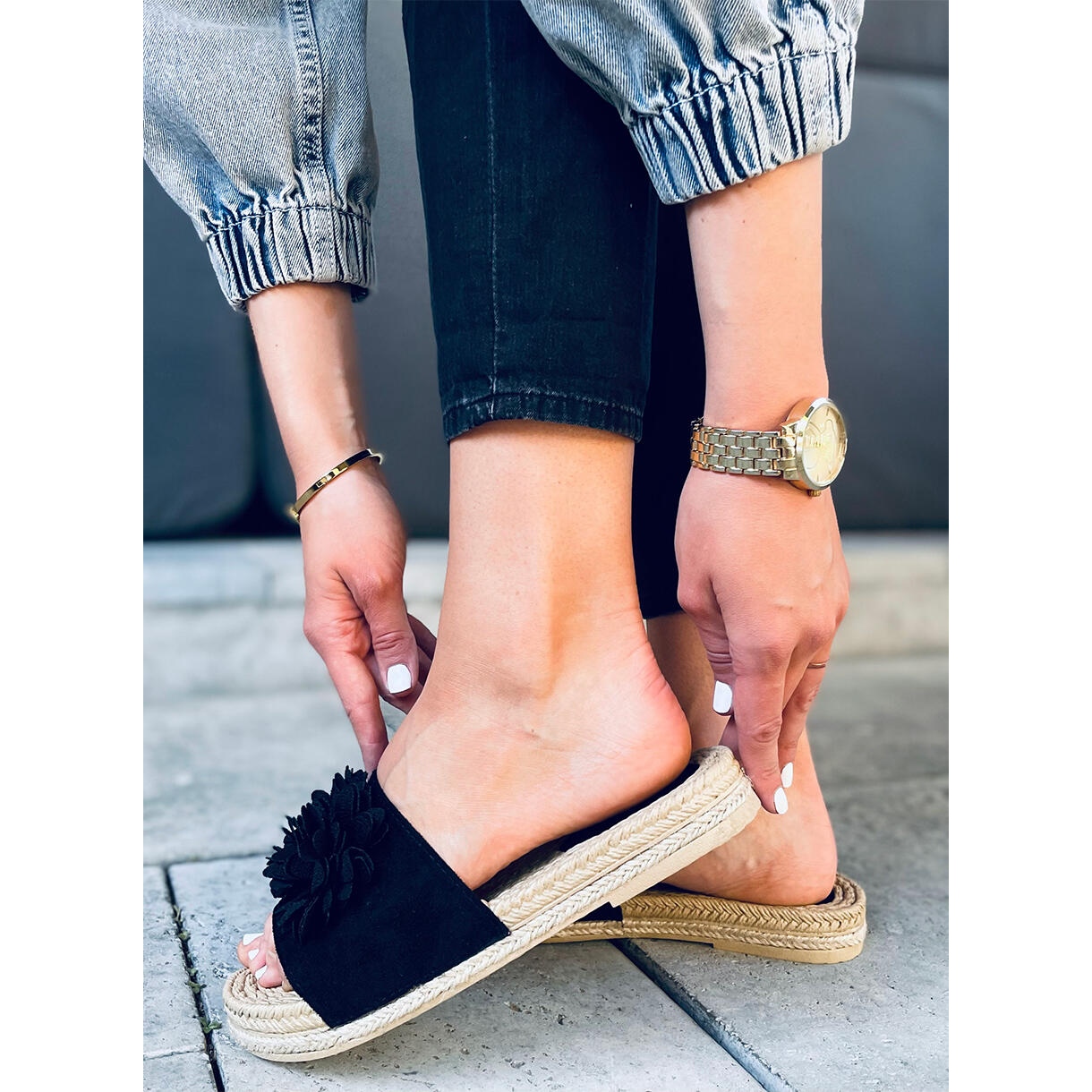 Nämä varvastossut sopivat täydellisesti useisiin asuihin - ilmavista mekoista rentoihin shortseihin. Klassinen musta väri tekee niistä äärimmäisen universaalin, ja ilmeikäs kukkakuvio lisää raikkautta ja keveyttä.