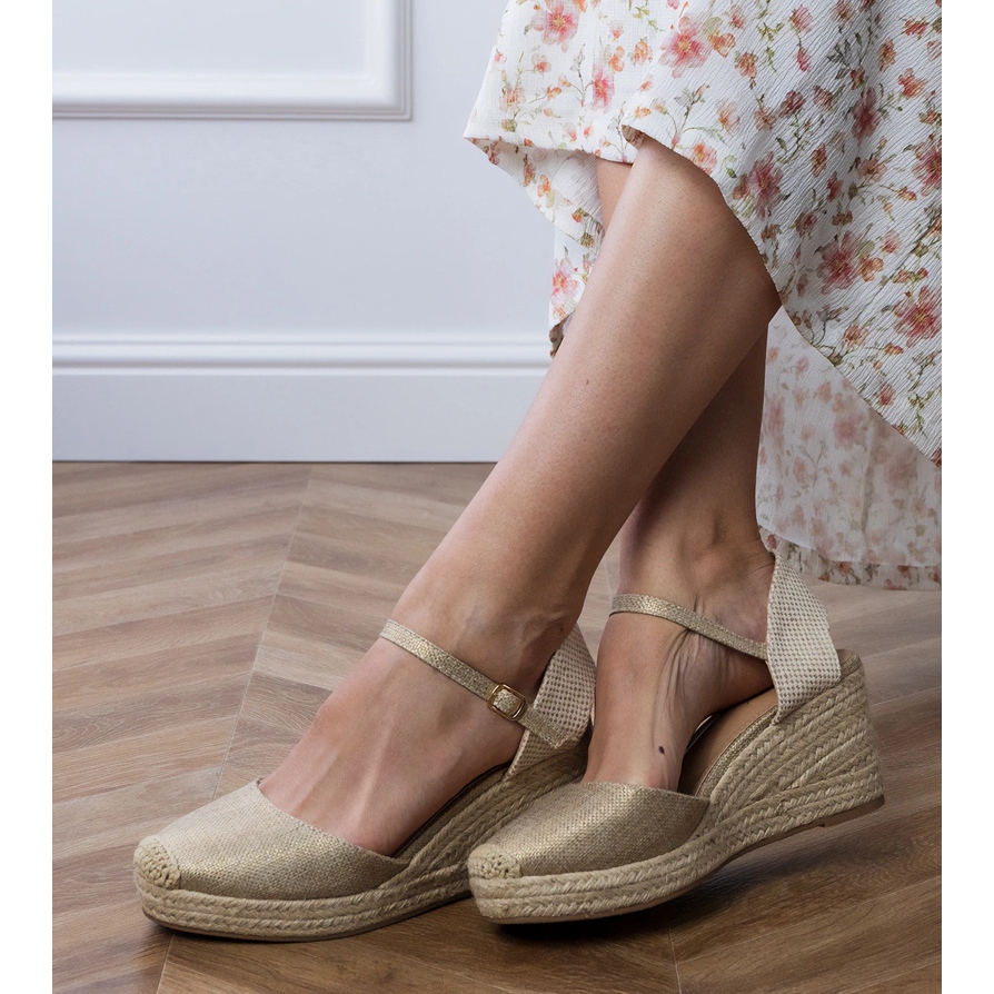 Alkuperäisessä pakkauksessa toimitetut kultaiset espadrillit ovat täydellinen lahjaidea rakkaalle. Veto muotista ja mukavuudesta näiden ainutlaatuisten sandaalien kanssa, joista tulee varmasti suosikkielementti kesäkaapistasi! Valitse X5-335-malli ja nauti arjen kulumisen ainutlaatuisesta tyylistä ja mukavuudesta.