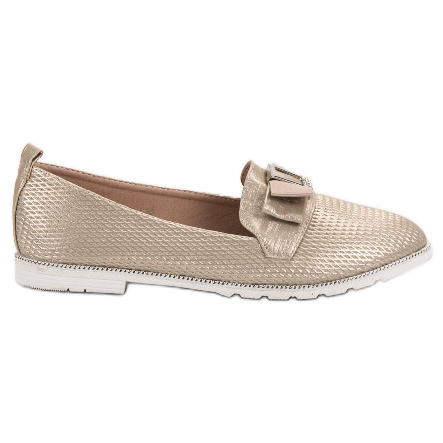 Tämä lord-malli erottuu hienoista yksityiskohdista, kuten tyylikäs rusetti ja kiiltävät strassit, jotka antavat niille hieman kiiltoa. Slip-on-kiinnityksen ansiosta kenkien pukeminen ja riisuminen on erittäin helppoa.