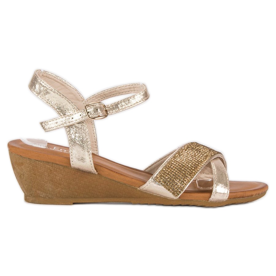 Inna Markan kultaiset kiila sandaalit ovat täydellinen valinta naisille, jotka haluavat lisätä tyyliään kiiltoa. Nämä klassiset kengät on valmistettu korkealaatuisesta ekologisesta nahasta, ja ne sopivat täydellisesti muotitrendeihin ja varmistavat samalla käyttömukavuuden.