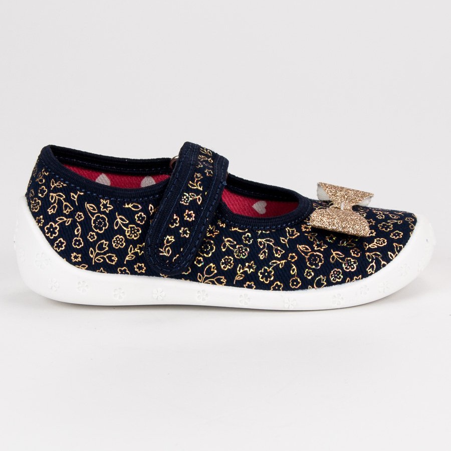 Tyylikkäät ja mukavat tossut tytöille, joissa kirkkaat värit yhdistyvät käytännölliseen ammattitaitoon. Tekstiilipäällinen sinisen ja keltaisen sävyissä kultaisilla yksityiskohdilla, kiinnitys tarranauhalla nopean ja turvallisen istuvuuden takaamiseksi. Täydellinen kouluun, päiväkotiin, arkeen ja leikkiin.