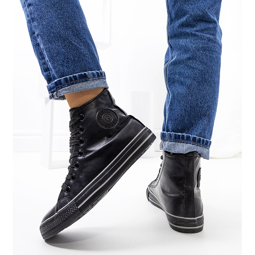 Tutustu Lade mustien eristettyjen korkeavartisten tennarien mukavuuteen ja tyyliin. Nämä tyylikkäät kengät on valmistettu korkealaatuisesta ekologisesta nahasta, mikä tekee niistä paitsi muodikkaita myös ympäristöystävällisiä. Herkän leikkauksensa ansiosta ne sopivat täydellisesti jalkaan ja takaavat käyttömukavuuden koko päivän.