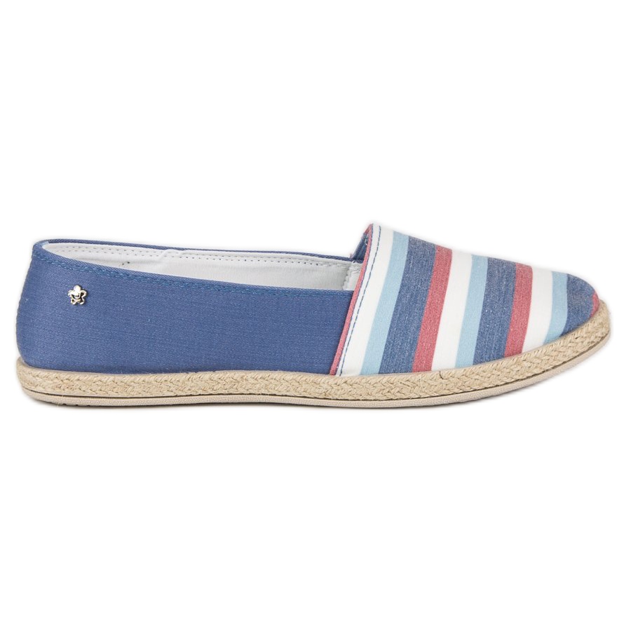 Vices slip-on espadrillit ovat täydellinen valinta naisille, jotka arvostavat tyyliä ja mukavuutta joka päivä. Nämä kauniit siniset kengät on koristeltu muodikkaalla raidatulla kuviolla, joka lisää niihin viehätystä ja raikkautta. Valmistettu korkealaatuisesta kankaasta, ne tarjoavat käyttömukavuuden ja erinomaisen ilmanvaihdon, mikä tekee niistä täydelliset lämpimiin päiviin.