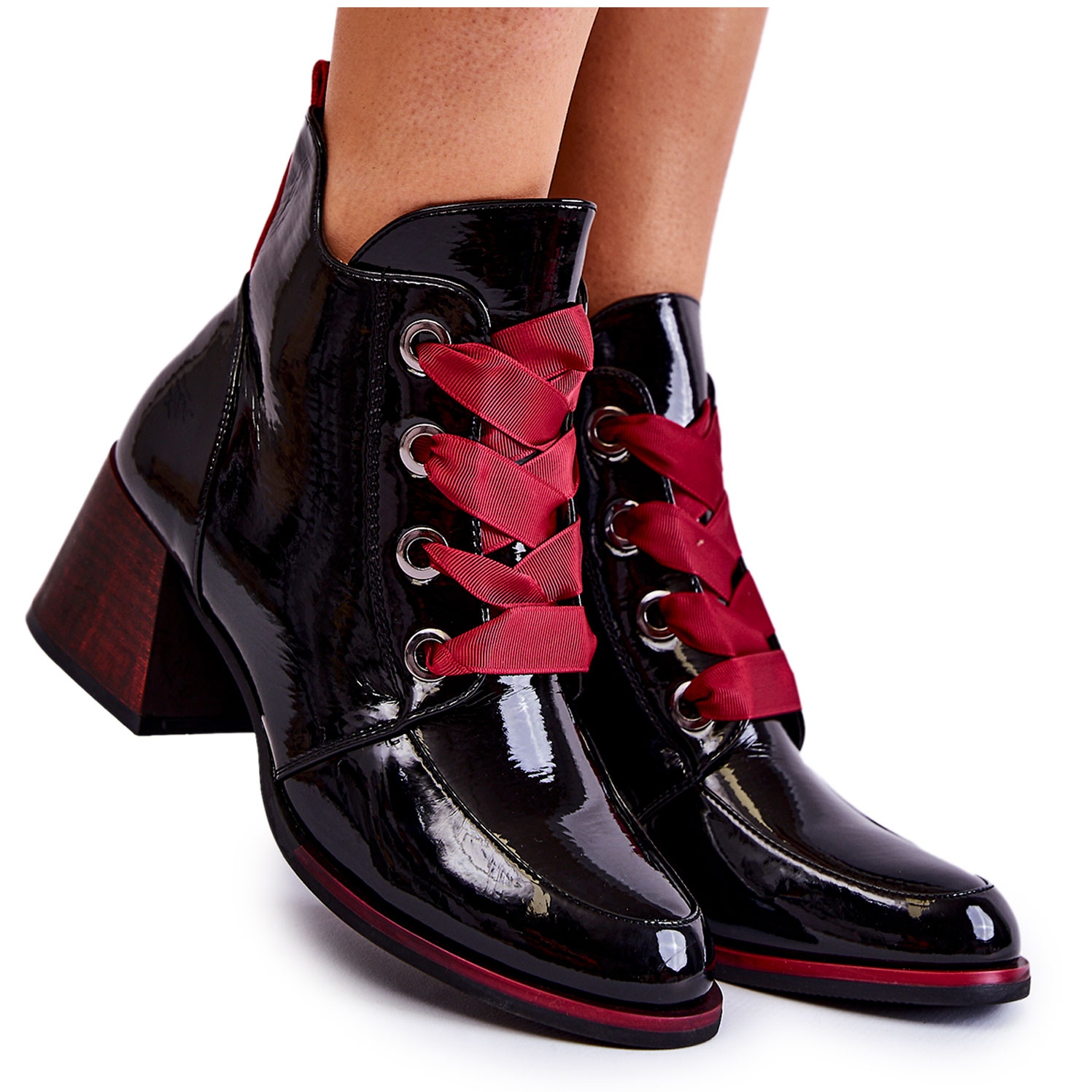 Esittelemme upeat Vinceza Tove patenttieristetyt nilkkurit ajattomassa mustassa värissä, jotka ovat täydellinen valinta kylmiin syyspäiviin. Näissä tyylikkäissä saappaissa yhdistyvät klassinen leikkaus moderneihin yksityiskohtiin, kuten koristeellisiin nauhoihin, joista toinen on klassinen ja toinen nauhan muotoinen - joten voit mukauttaa ne tyyliisi sopivaksi.