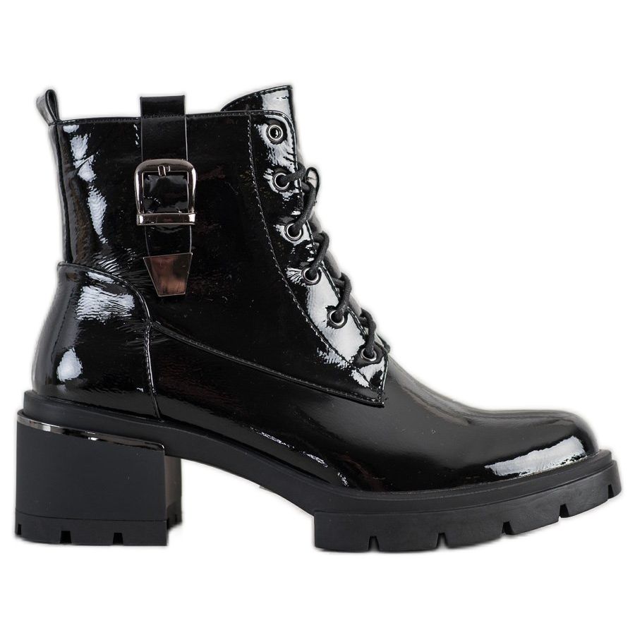 SHELOVET Black Lacquered Fashion Workers ovat välttämätön jokaisen naisen vaatekaappi, jossa yhdistyvät muoti ja toiminnallisuus. Sijoita ainutlaatuiseen tyyliisi ja valitse nämä tyylikkäät nilkkurit!