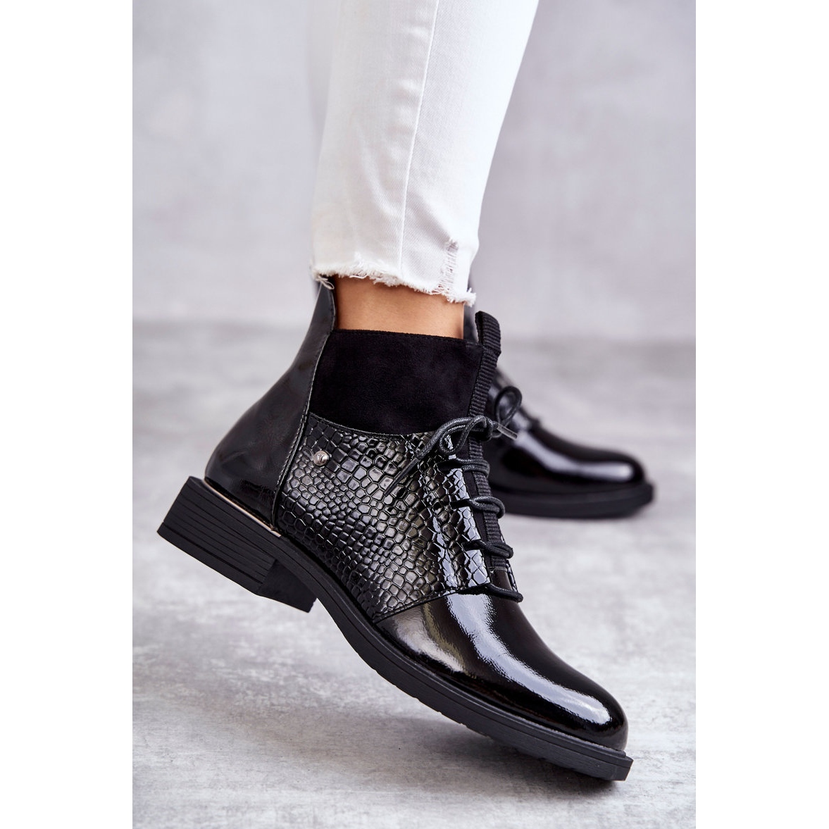 Yksityiskohdat: Vinceza Lakatut mustat lämpimät nauhalliset saappaat Cathrine