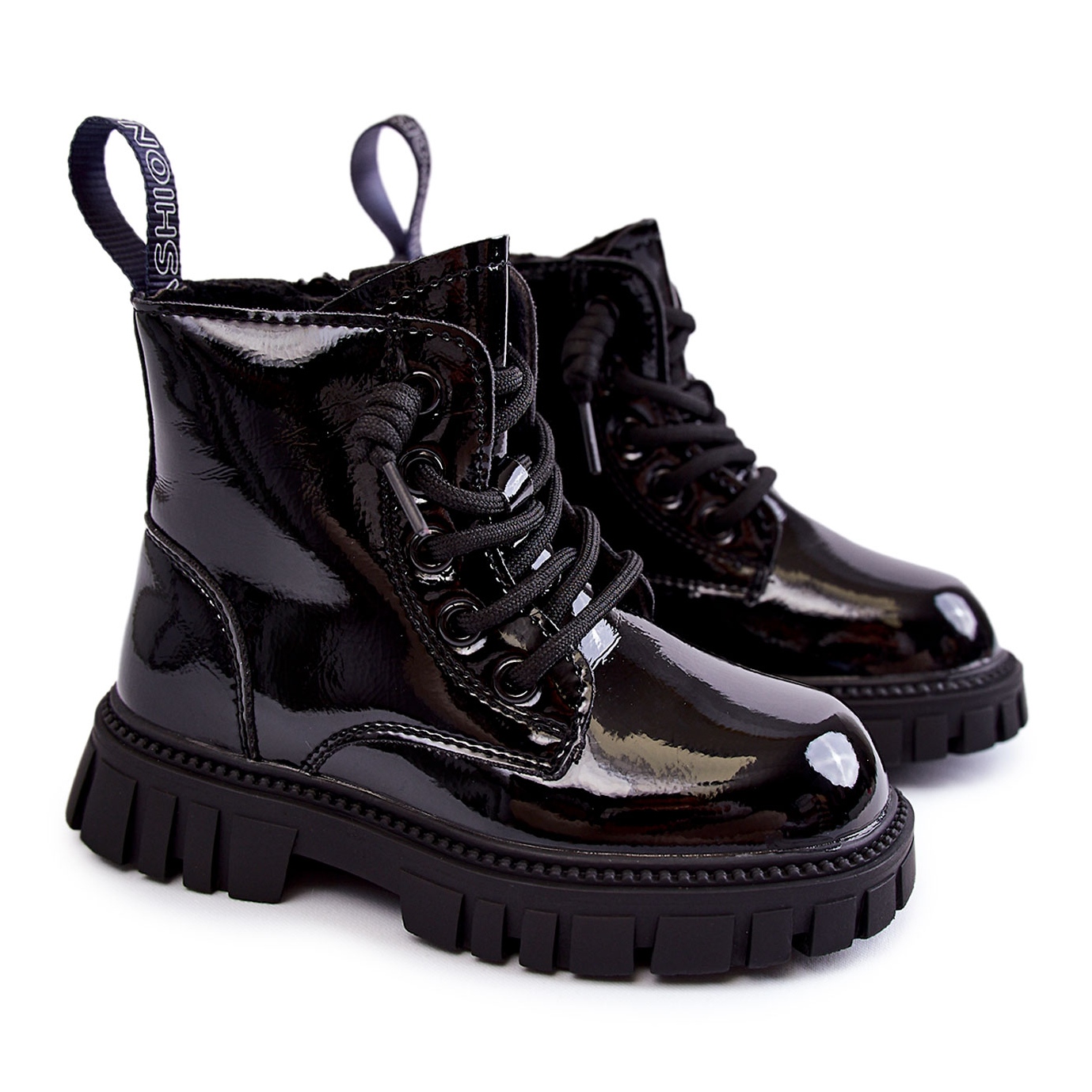 Yksityiskohdat: PA1 Lakatut mustat lämpimät saappaat Heidi