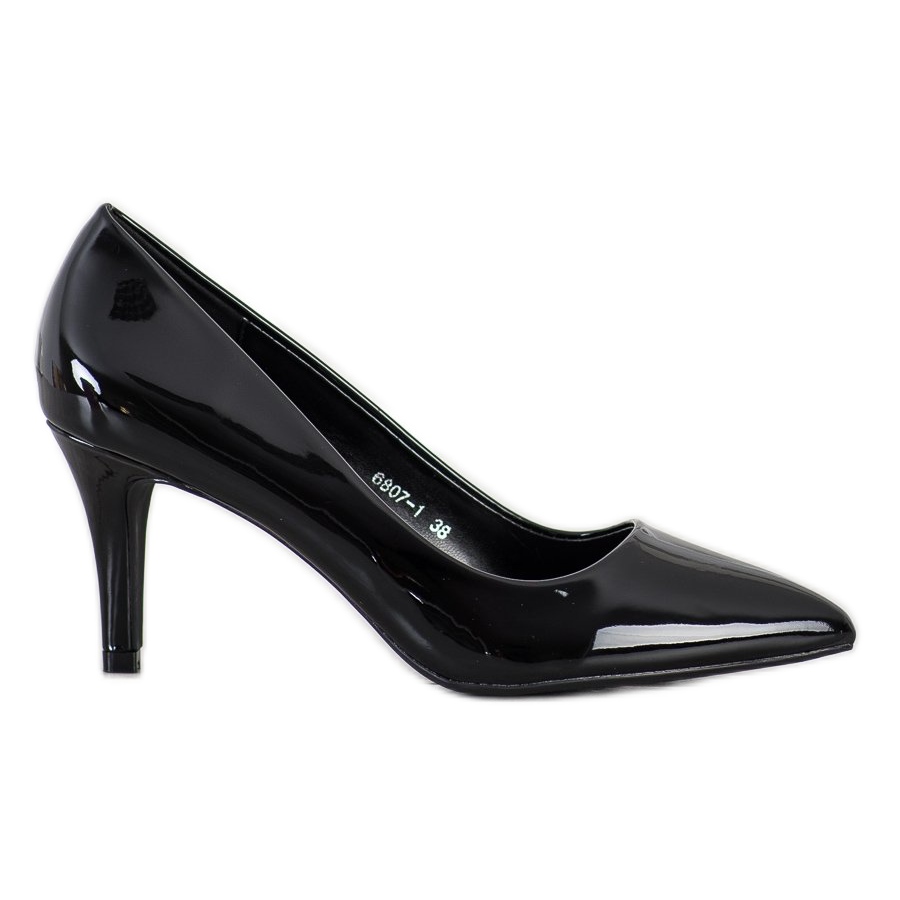 Löydä eleganssia ja klassista tyyliä mustilla Gogo-korkokengillä! Nämä upeat patenttipumput ovat välttämätön jokaisen naisen vaatekaappi. Niiden kiiltävä materiaali houkuttelee huomiota ja lisää viehätysvoimaa mihin tahansa tyyliin. Terävä varvas ei ainoastaan kavenna jalkaa visuaalisesti, vaan antaa myös yläosalle muodikkaan, modernin luonteen.