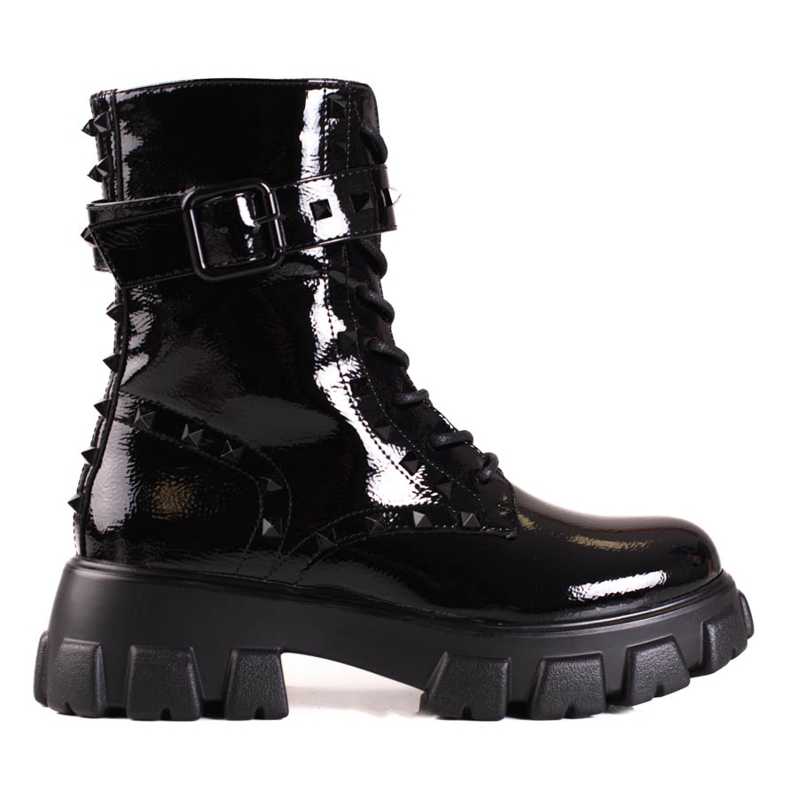 Shelovet naisten lakattu työlaukku on erinomainen valinta naisille, jotka arvostavat paitsi tyyliä myös mukavuutta. Näissä mustissa nilkkureissa yhdistyvät rennon ja rockin luonne, mikä tekee niistä täydelliset jokapäiväisiin retkiin syys/talvikaudella.
