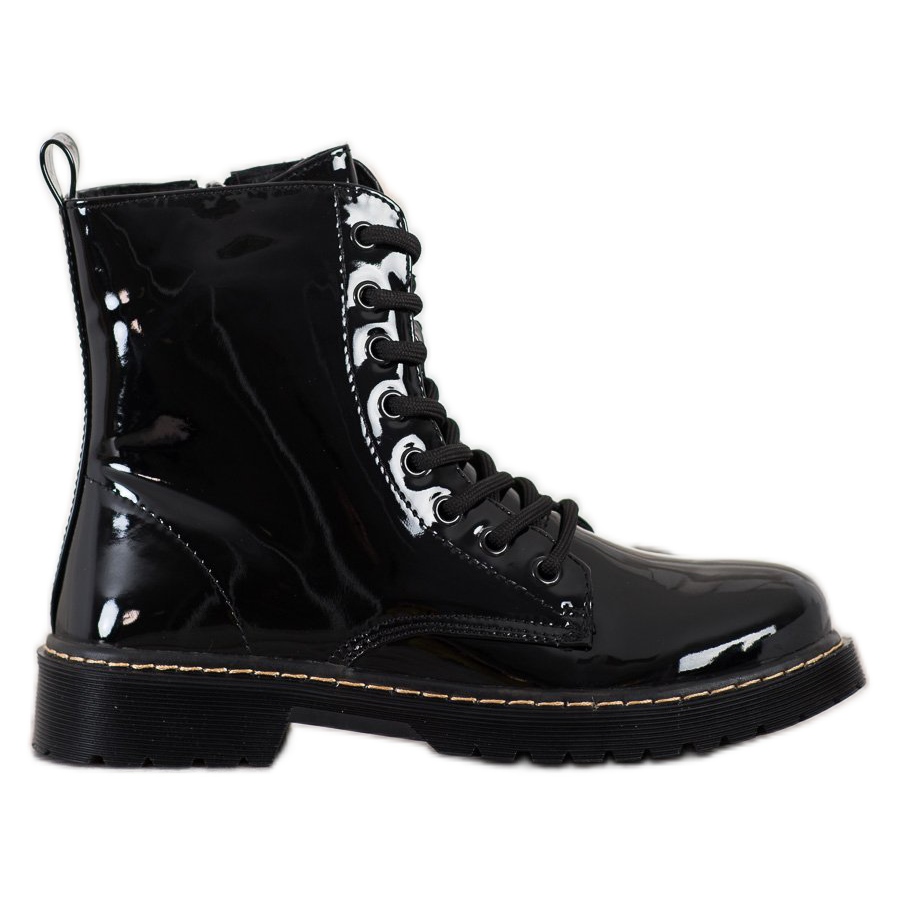 Esittelemme Small Swan Patent Workers -saappaat tyylikkäässä mustassa värissä, jotka ovat täydellinen yhdistelmä rentoa ja rock-tyyliä. Nämä ainutlaatuiset naisten kengät, jotka on suunniteltu syys/talvikaudelle, ovat täydellinen valinta jokapäiväiseen käyttöön ja lisäävät luonnetta mihin tahansa tyyliin.