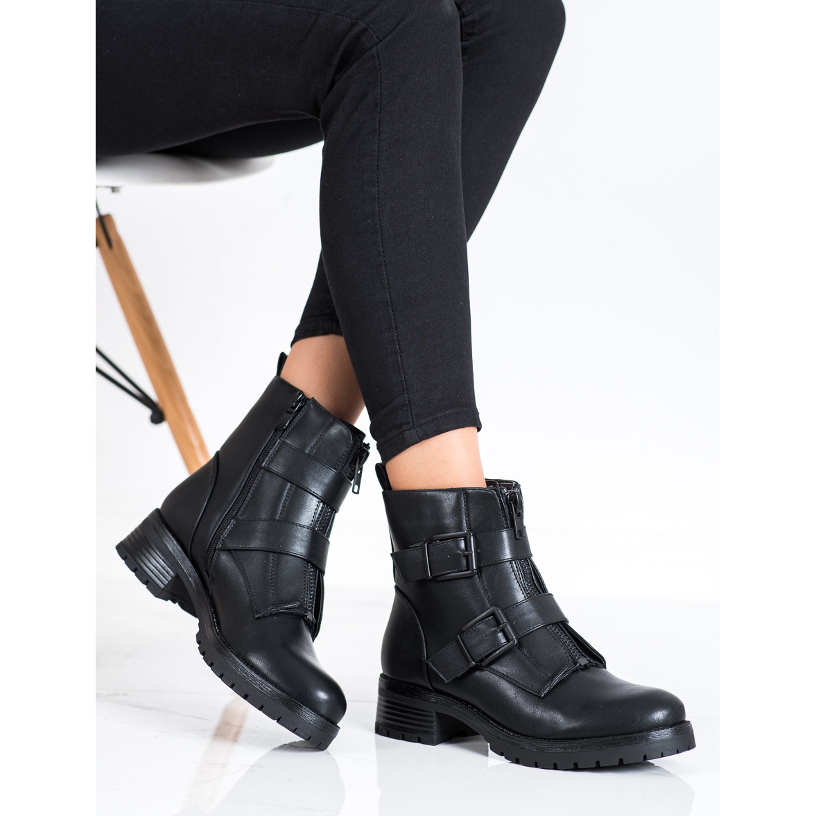Kengät ulottuvat nilkan yläpuolelle, mikä tarjoaa erinomaisen vakauden ja lämmön kylmempinä päivinä. 15 cm korkea yläosa ja eristetty rakenne takaavat, että jalkasi ovat suojassa kylmältä. Vetoketju ja koristeellinen solki antavat niille modernin luonteen.