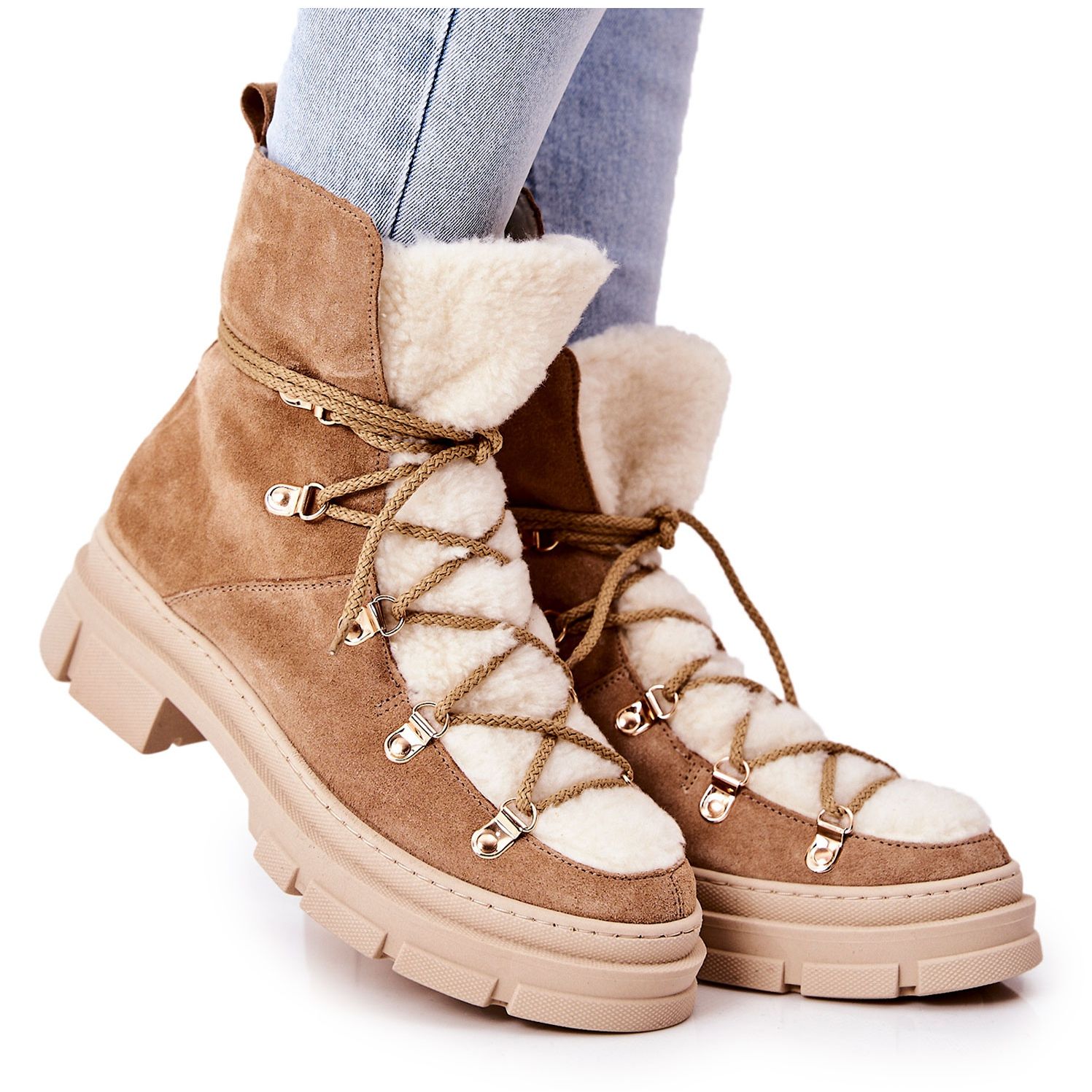 Yksityiskohdat: PF1 Lämpimät mokkanahkasaappaat Beige Trappers Mindago