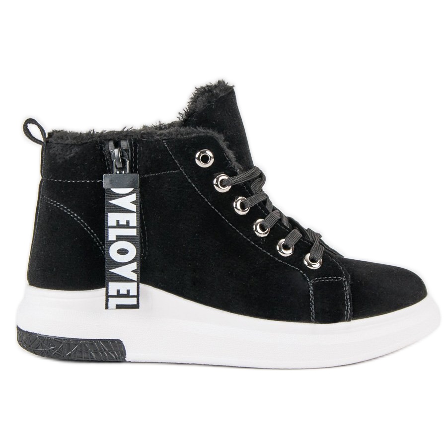Eristetyt mustat tennarit ovat täydellinen yhdistelmä tyyliä, mukavuutta ja toimivuutta, luotu naisille, jotka haluavat näyttää muodikkailta myös talvipäivinä. Nämä matalat lenkkarit on valmistettu ympäristöystävällisestä mokkanahasta, ja ne pitävät sinut lämpimänä vankan eristyksen ansiosta ja ovat samalla erittäin mukavia.
