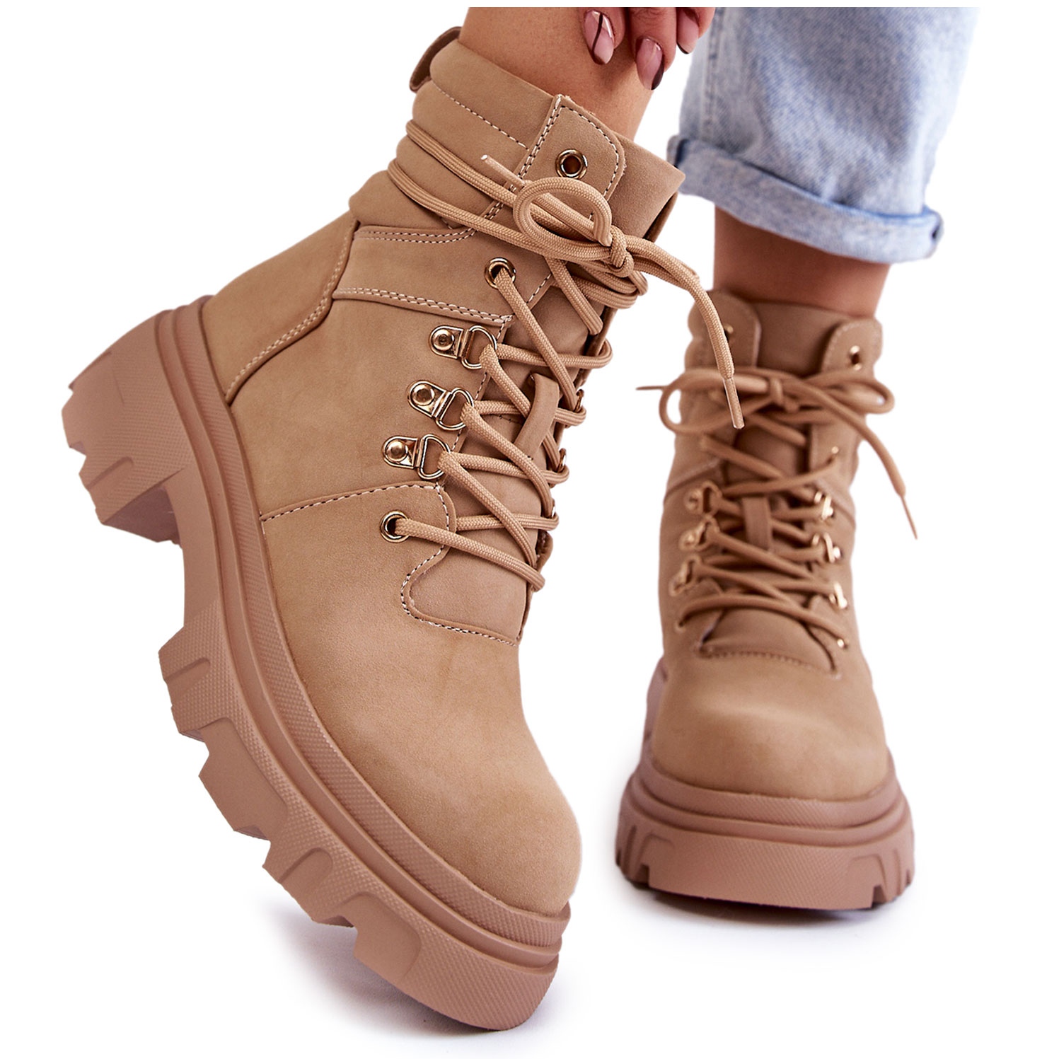Yksityiskohdat: Lämpimät nahkaiset nauhasaappaat beige Merisha