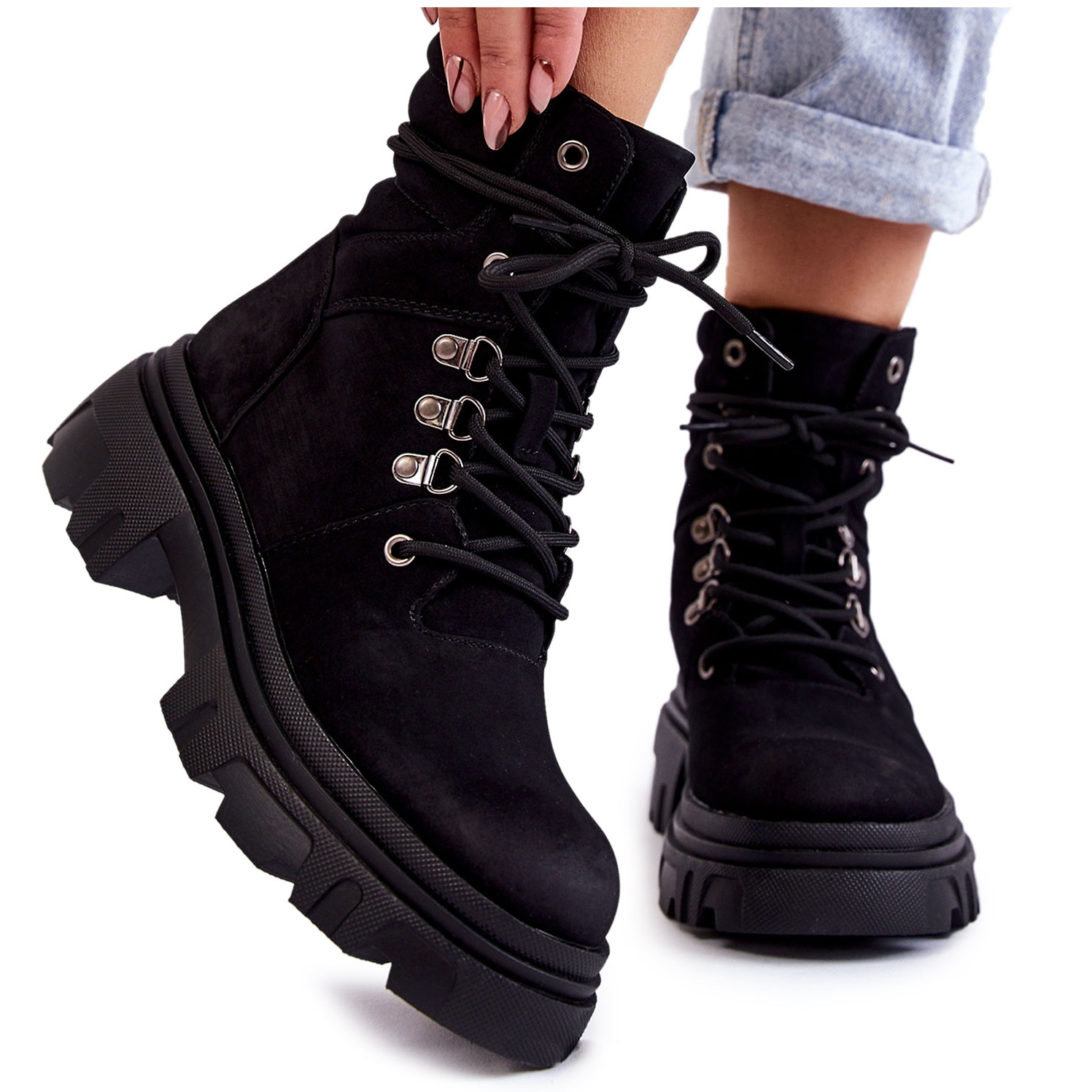 Yksityiskohdat: Lämpimät nahkaiset nauhasaappaat Musta Merisha