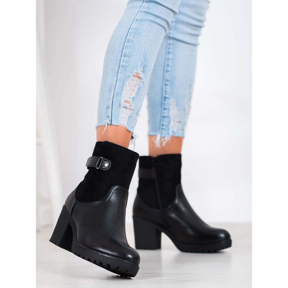 Tutustu lämpimiin nilkkurit J. Starilta - täydellinen kylmempään päivään! Näissä tyylikkäissä mustissa naisten nilkkureissa yhdistyvät mukavuus ja muodikas muotoilu, joten ne sopivat täydellisesti arki- ja muotityyliin. Valmistettu ekologisesta nahasta ja osittain koristeltu mokkanahalla, ne ovat tyylikäs lisä kaikkiin syys-talvityyleihin.