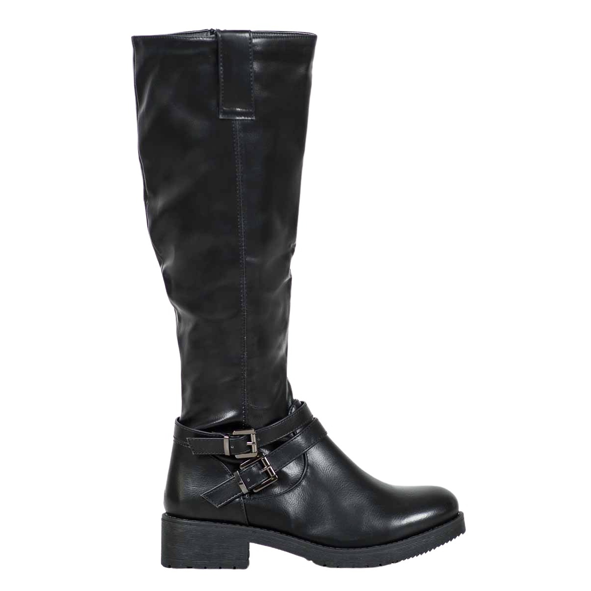 Saappaat erottuvat koristeellisista hihnoista ja soljista, jotka antavat niille ainutlaatuisen luonteen. Yläleveys 40 cm ja korkeus polveen sopivat täydellisesti jalkaasi, ja rento ja klassinen tyyli tekevät niistä täydelliset sekä arkeen että iltaretkelle.