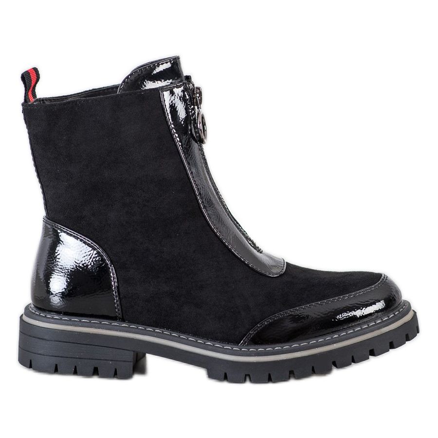 Futuristisen ulkonäön, patentoidun viimeistelyn ja klassisen mustan värinsä ansiosta nämä saappaat sopivat täydellisesti rentoon rock-tyyliin. Kulutuspinnalla varustettu muovipohja tarjoaa riittävän pidon eri pinnoilla, mikä on välttämätöntä syksyn ja talven kävelylenkeillä.