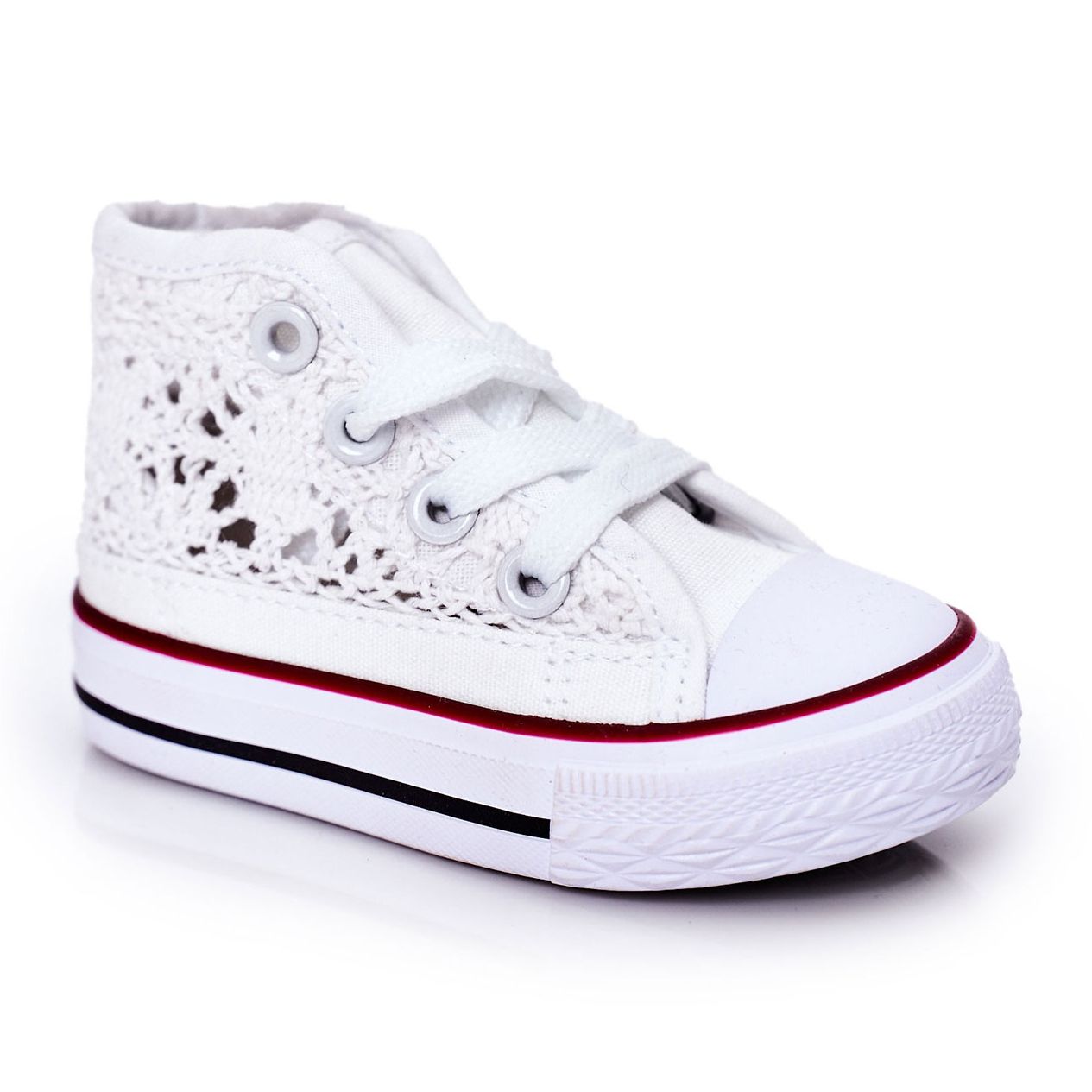 Yksityiskohdat: Lasten korkeat lenkkarit, joissa on pitsi valkoinen Roly-Poly