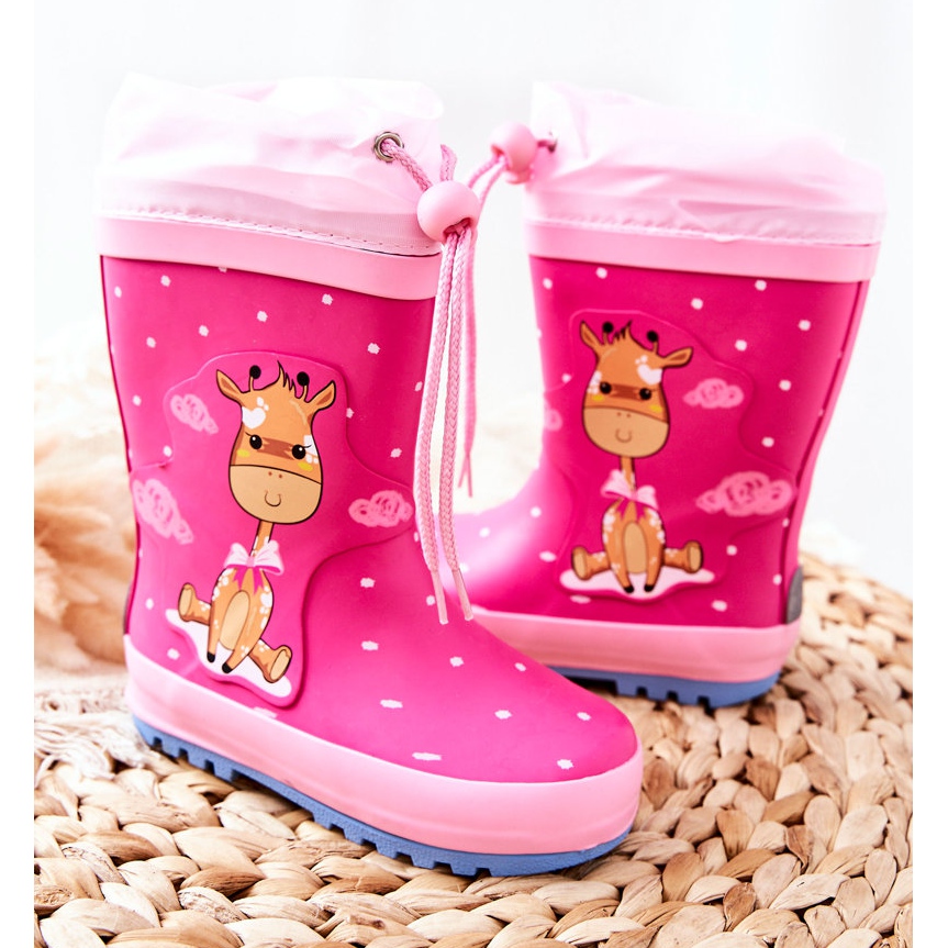 Yksityiskohdat: Lasten kumiset sadesaappaat Fuchsia Glynnal Giraffe vaaleanpunainen